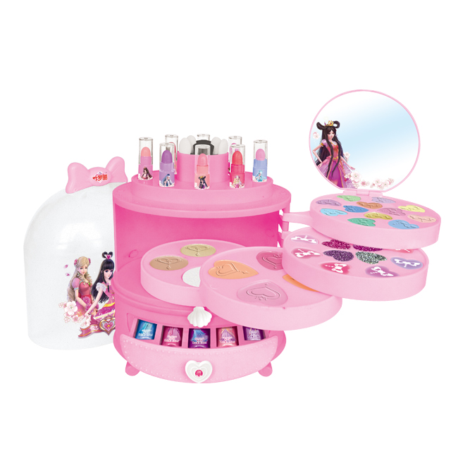 8只眼影,4只湿眼影,8只唇彩,4只闪粉唇彩,4只腮红,3只粉饼,1片粉扑,8只口红,6只化妆刷,5只指甲油