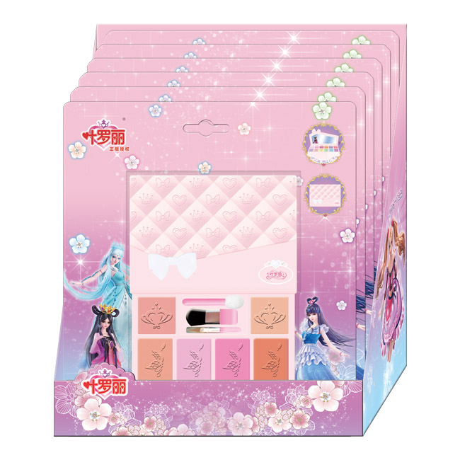 6只唇彩,6只眼影,2只粉饼,4只腮红,3只化妆刷