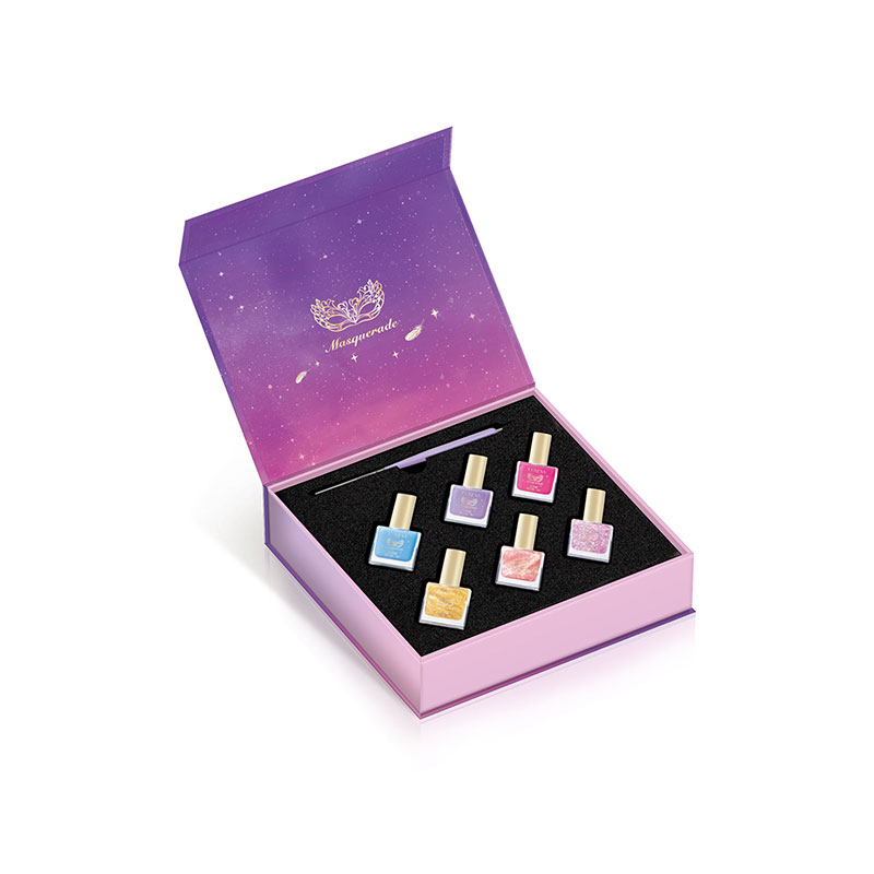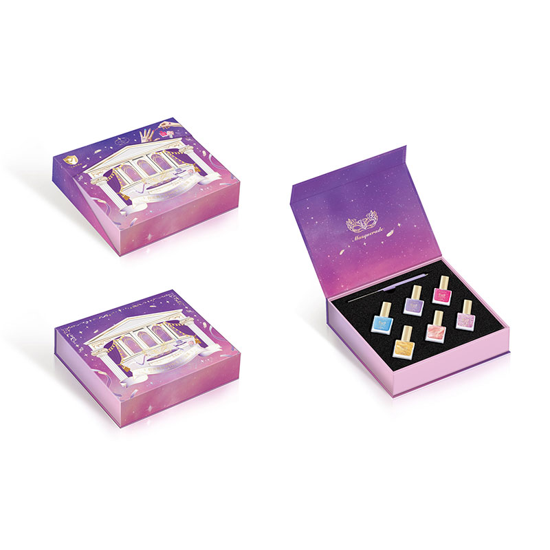 产品: 外箱规格(cm):56x23x63 装箱数(个):24/48 产品内容:6瓶水性指甲油,1支美甲笔,1张小号美甲贴纸,1张大号美甲贴纸,1张钻石贴纸